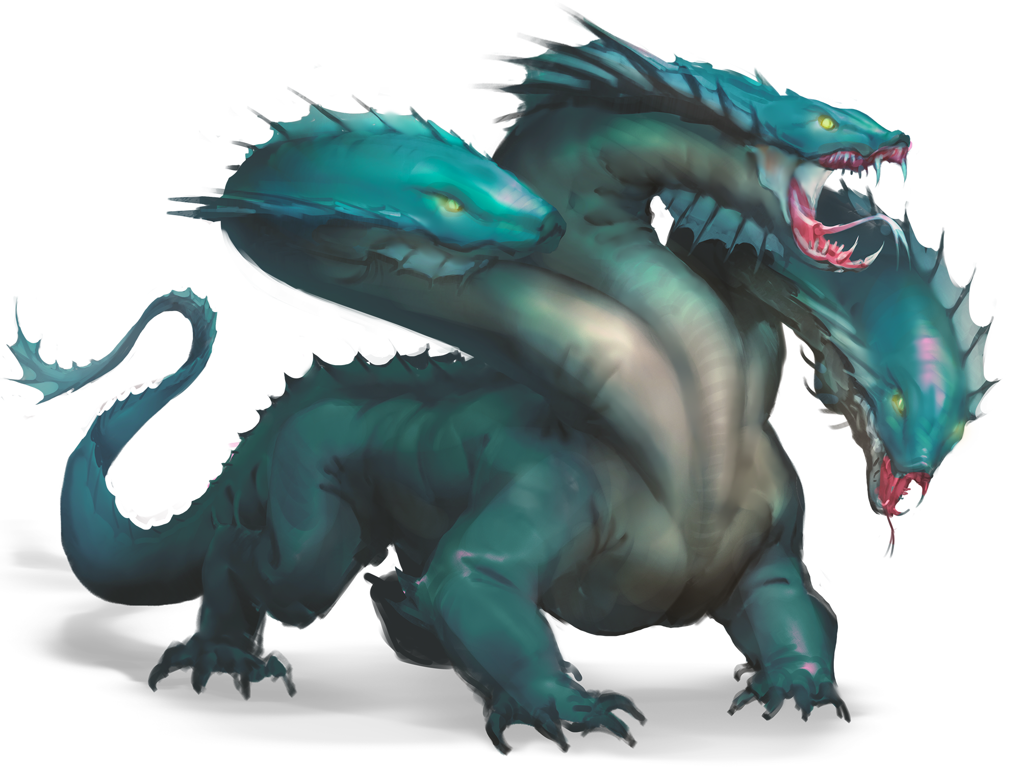 A quadrupedal scaled beast with multiple long-necked heads, each filled with menacing fangs.