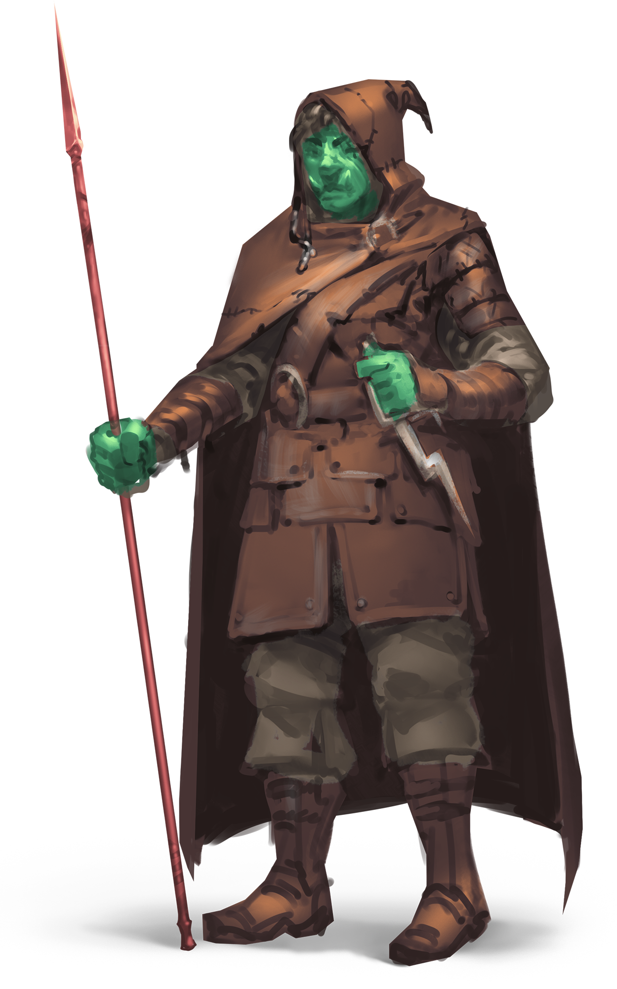 A seasoned bandit in quality leathers with a strong voice and cunning eyes.