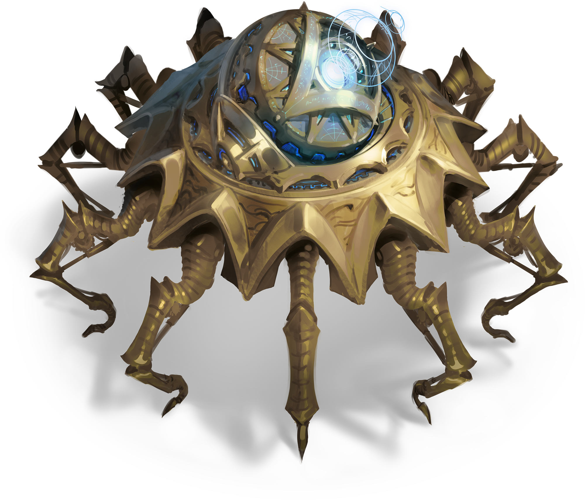 A massive living turret with reinforced armor and twelve piston-driven mechanical legs.