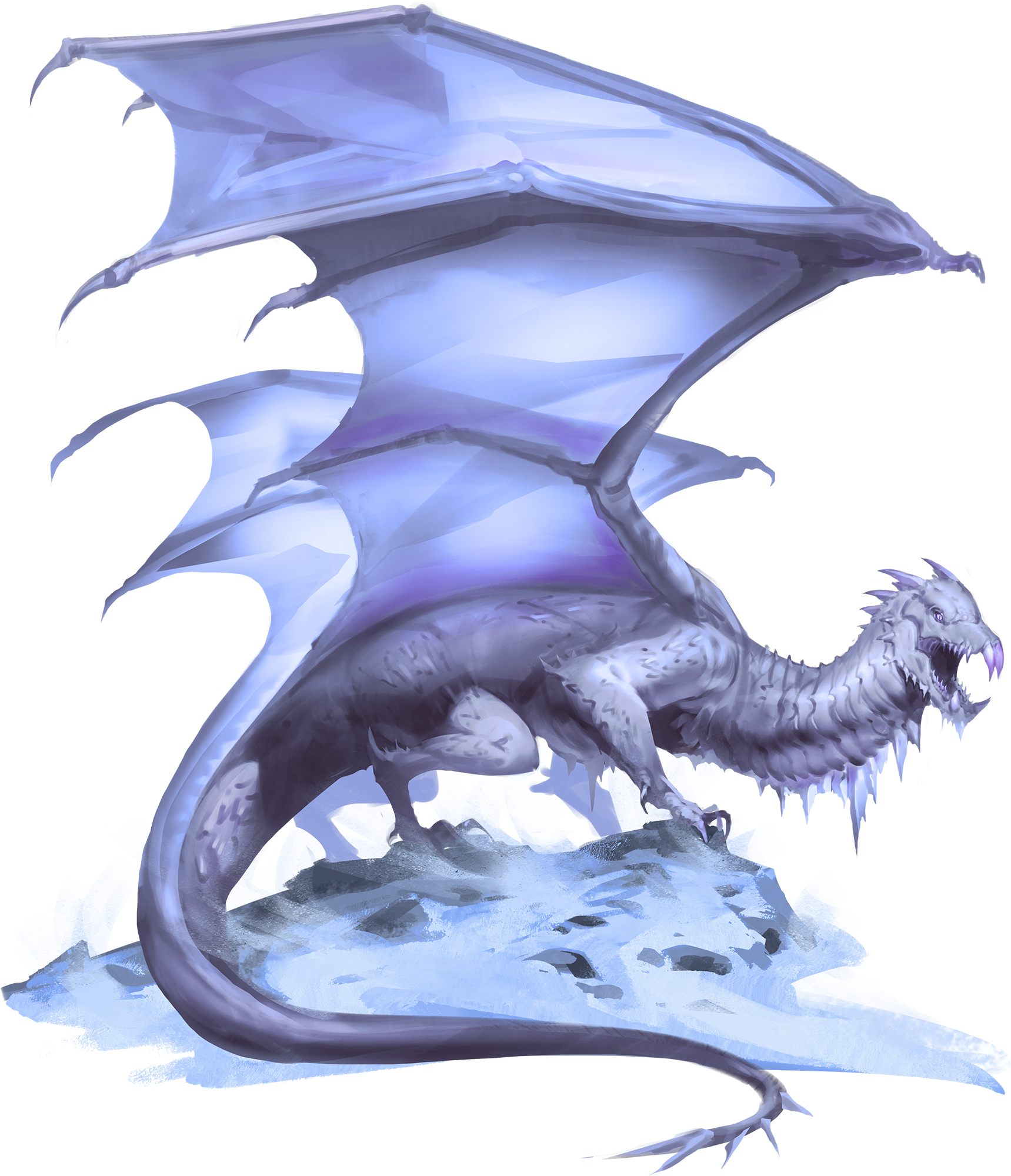 A glacier-blue dragon with four powerful limbs and frost-tinged wings.